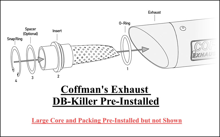 Each exhaust has the same internals as your favorite full sized exhaust including a large core surrounded by packing and a removable DB-Killer providing proper back pressure for your bike.