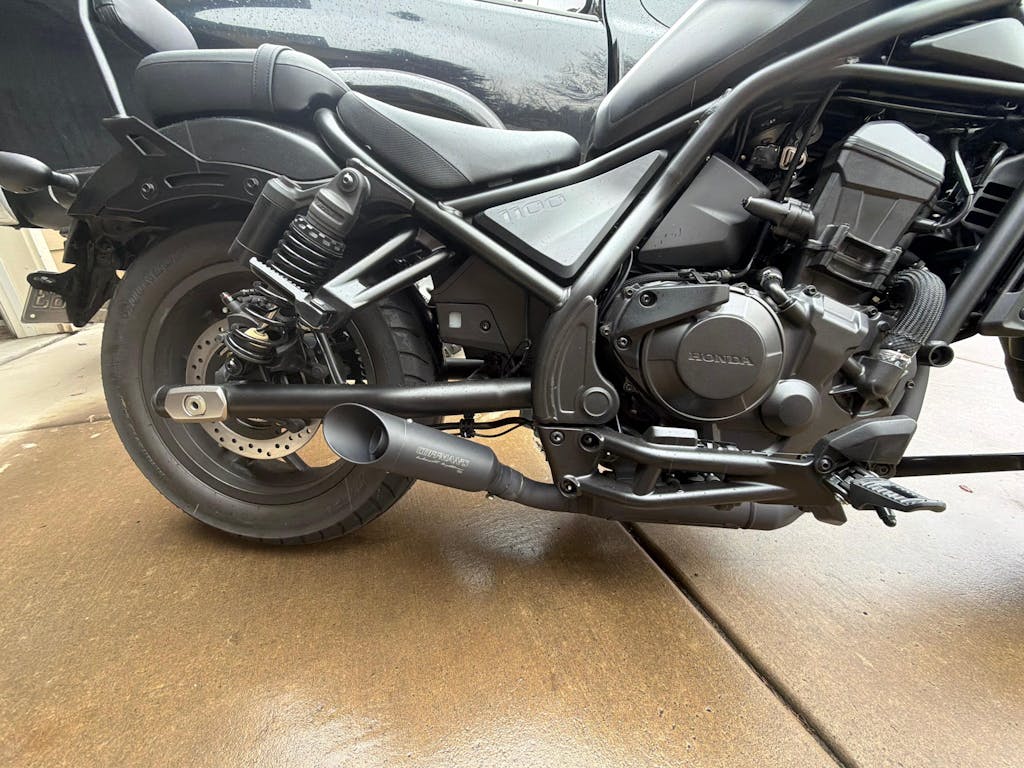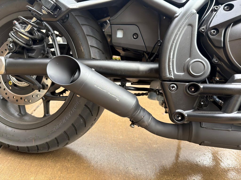 - The Classic Rebel 1100 exhaust has our custom shorty look with adaptability to all saddle bags. It includes our unique baffling set up utilizing a large perforated core with packing as well as our unique removable sound suppressor. This system creates a very healthy growl to your bike. It is ceramic coated black and includes a billet aluminum tip that you can order with ceramic black coating or polished. They are manufactured from 304 stainless right here at our plant in Ukiah, CA.